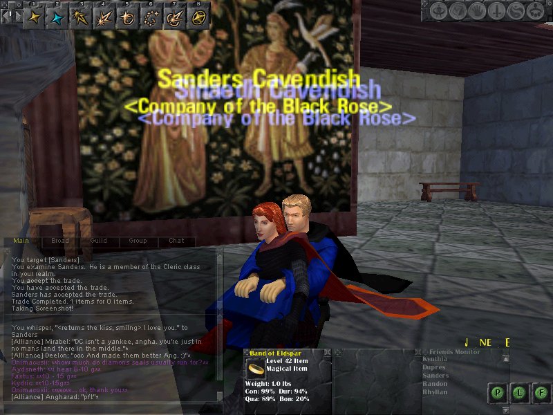 So may this shining hour be an open door through which Sanders and Sinaedh will go forth to build that dearest of all relationships, a happy marriage. May the years deal gently with them; walking together may they find far more in life than either would have found alone; and even more fully may they come to know this one supreme truth: That caring is sharing… That living is giving… That life is eternal… And that love is its crown. |