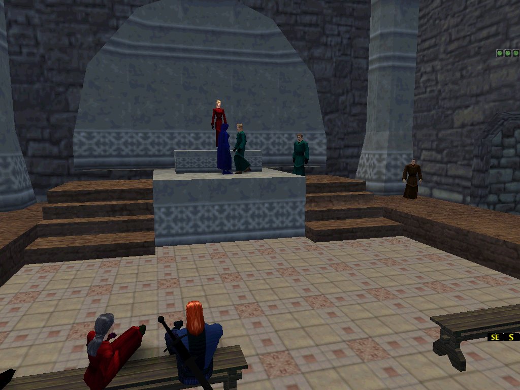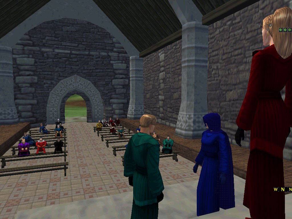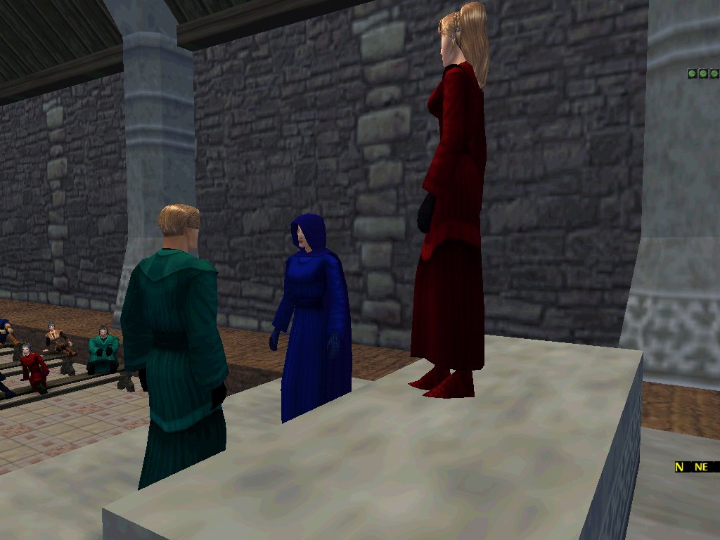 Finally the big day arrives. Randon stands in for Gregor Bell to walk Sinaedh down the aisle, marking her transition from one life to another. Christiana Ravenshire, friend of the couple and Bishop of the Church officiates the ceremony. |